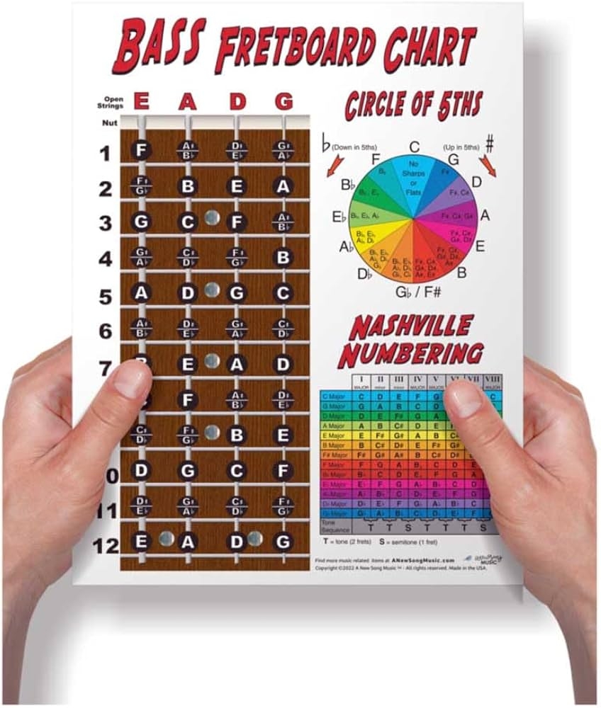 Laminated 4 String Bass Fretboard Notes Chart Nashville Number System U0026 Circle Of 5ths Easy Instructional Poster For Beginner For Notebook A New Song Music 8 5 X 11 White Amazon ca