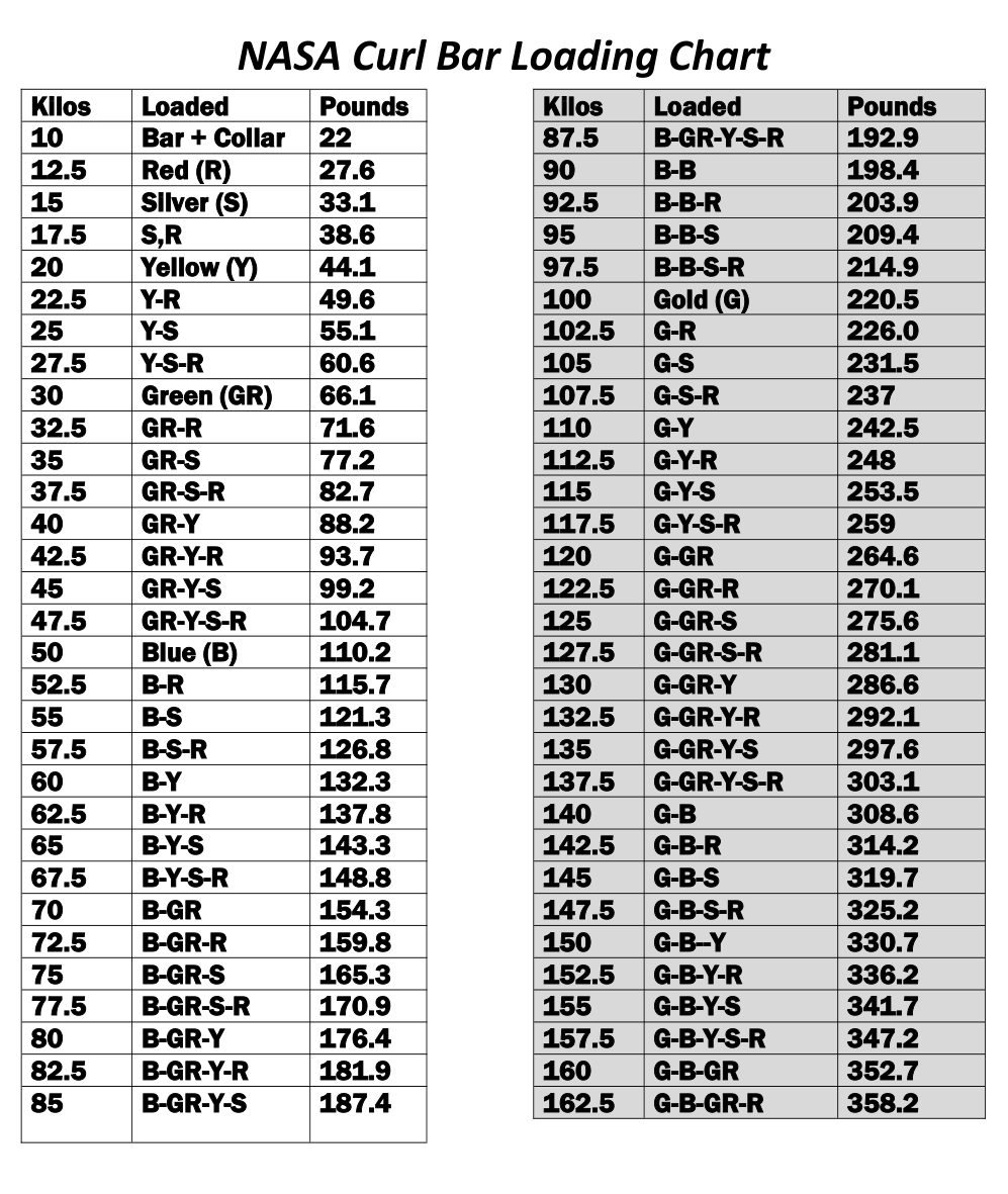 Kilo Chart NASA Powerlifting