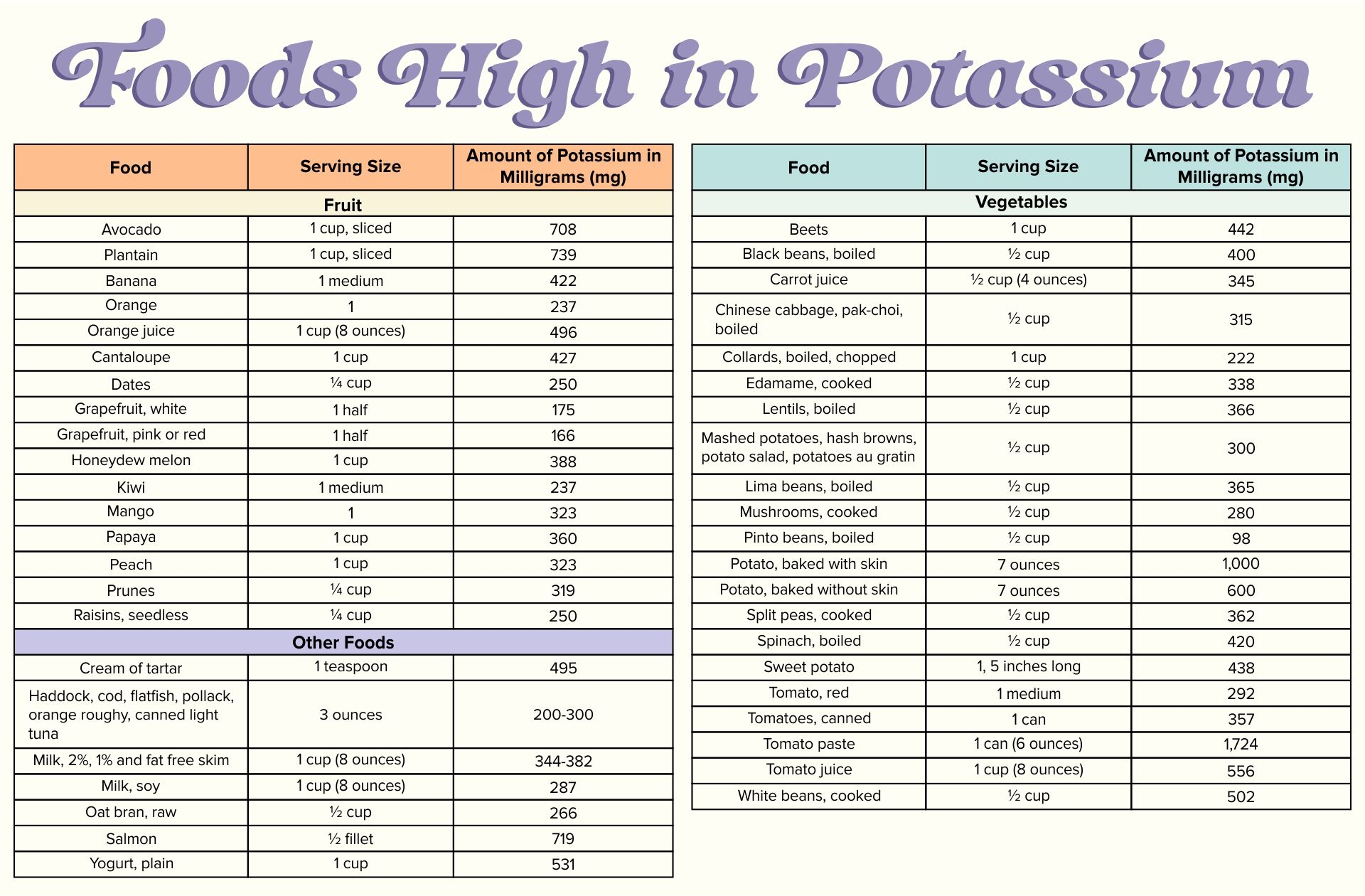 Printable Potassium Rich Foods Chart