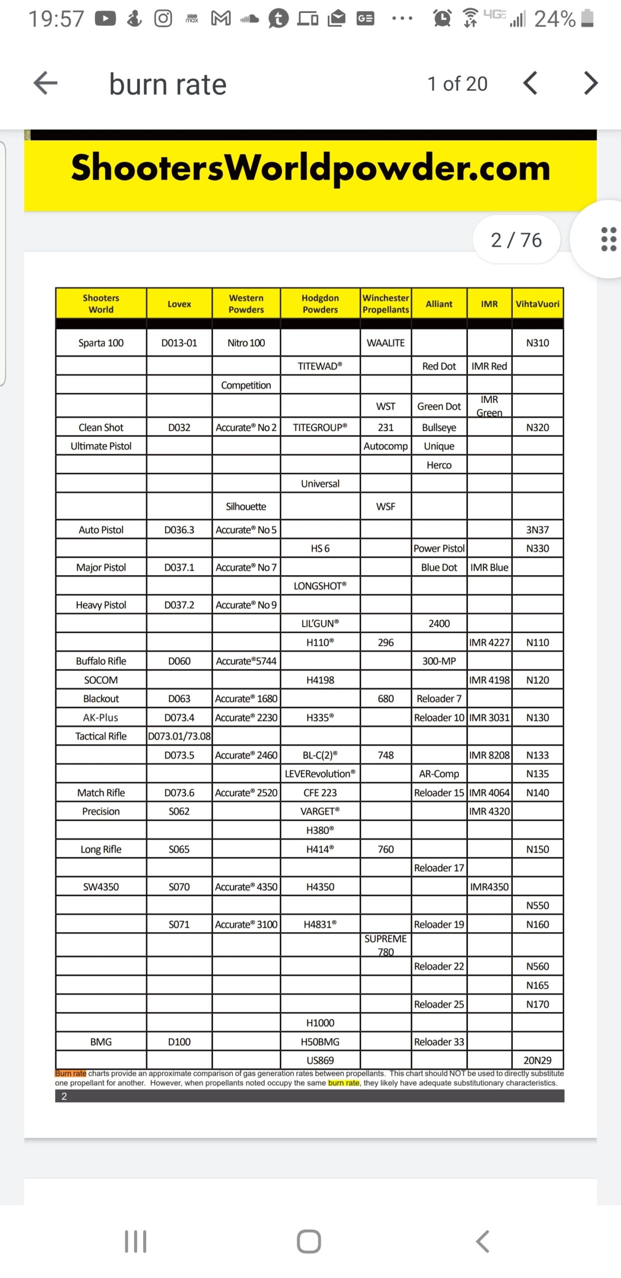 Printable Powder Burn Rate Chart