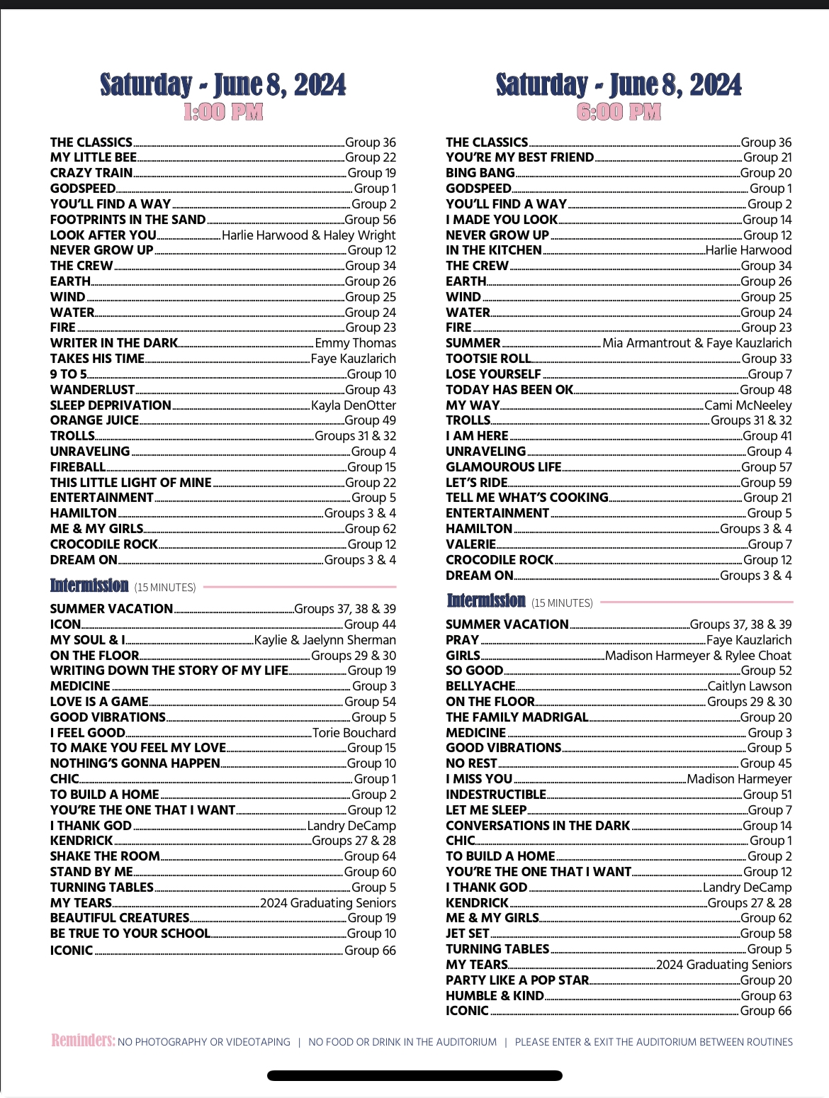 Recital Show Orders Pat Barton Dance Studio