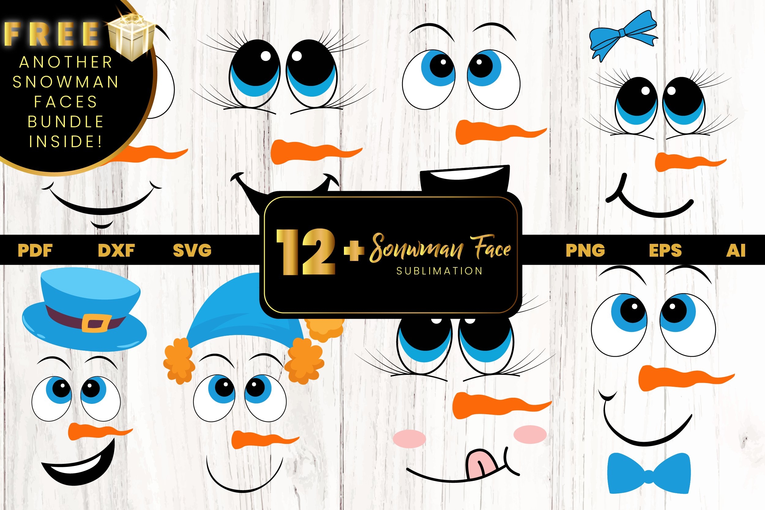 Free U0026 Premium Snowman Faces SVG Files Design Bundles