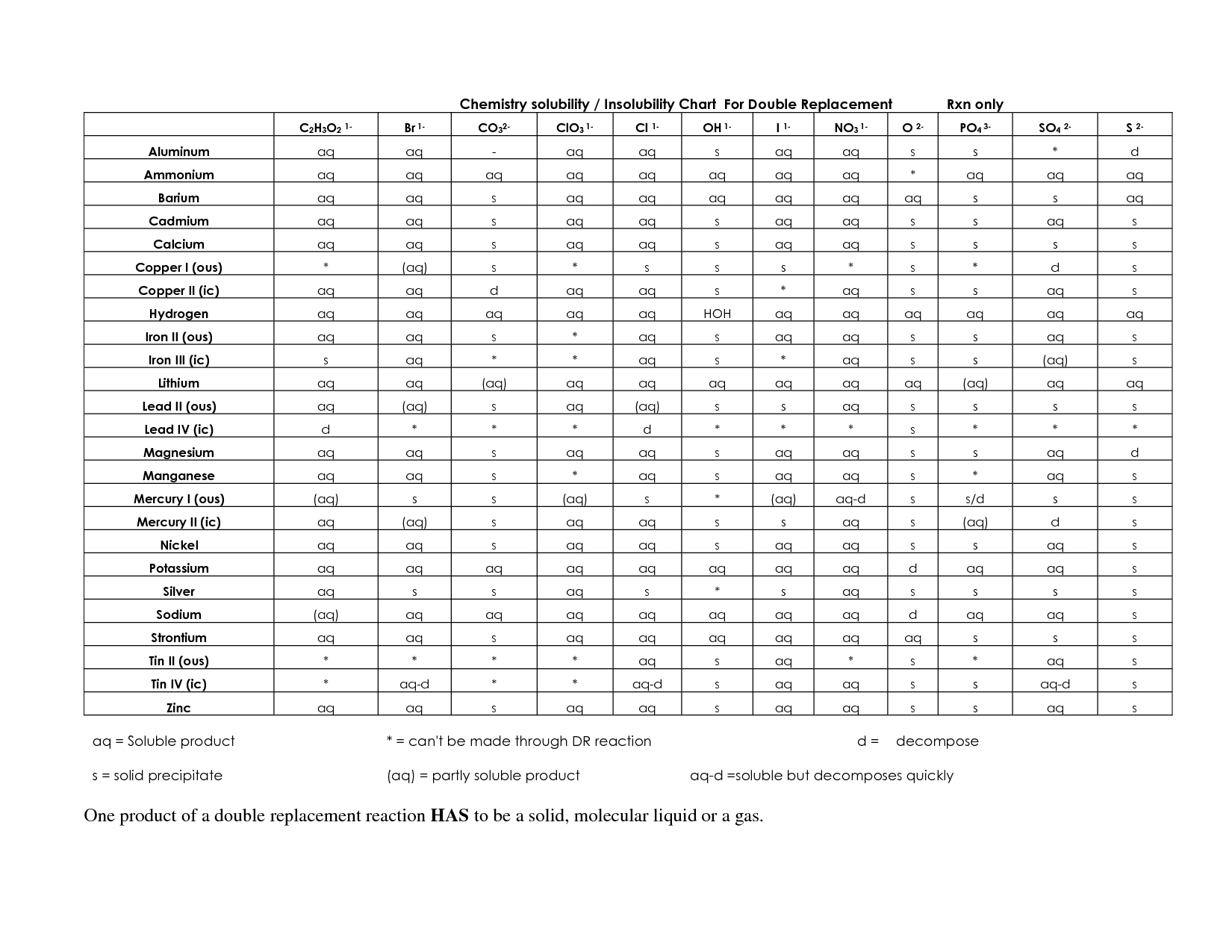 Printable Solubility Rules Chart
