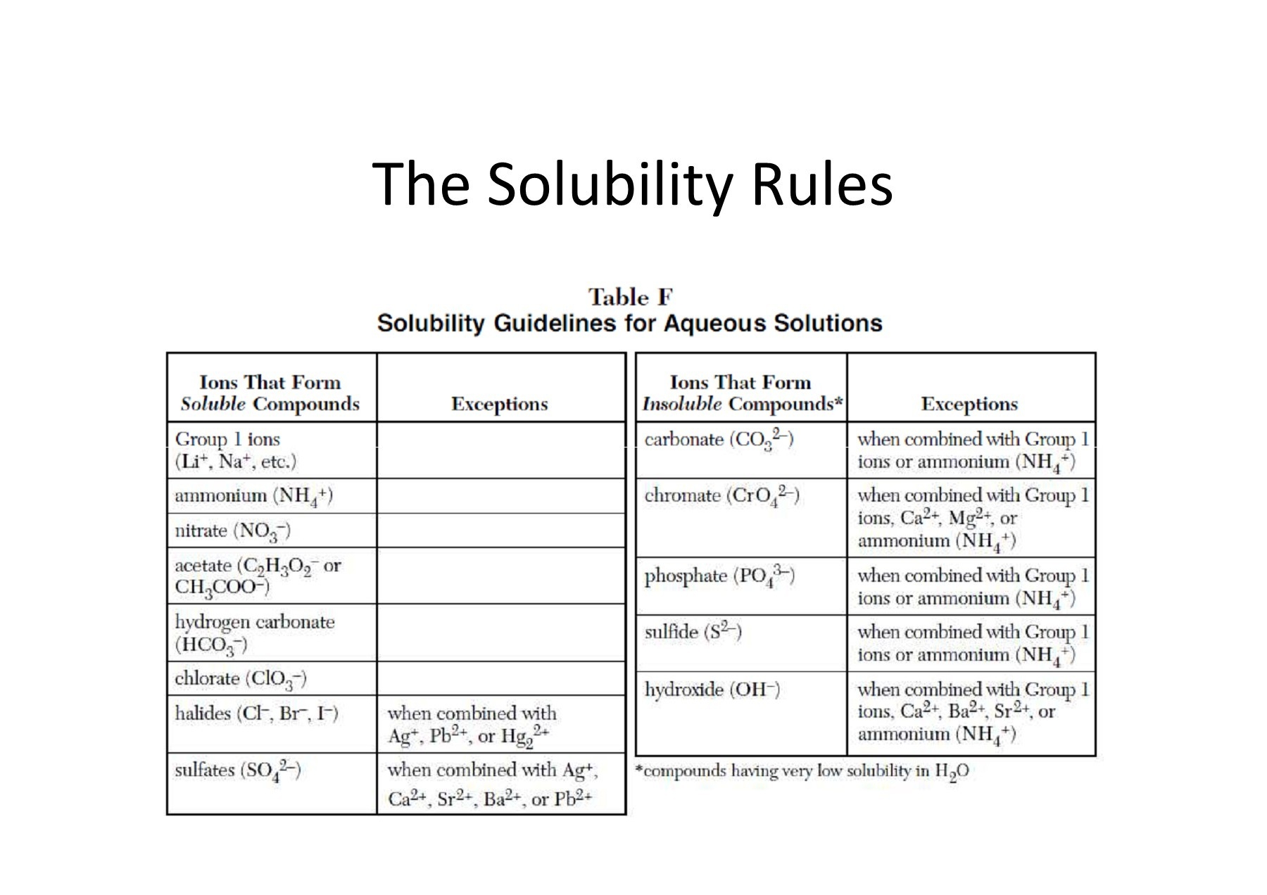 Solubility Table Sayre Chemistry 2