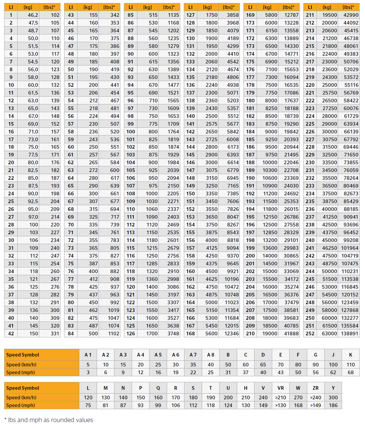 OTR Tyre Load Index And Tire Speed Symbol Data Meanings Togmax