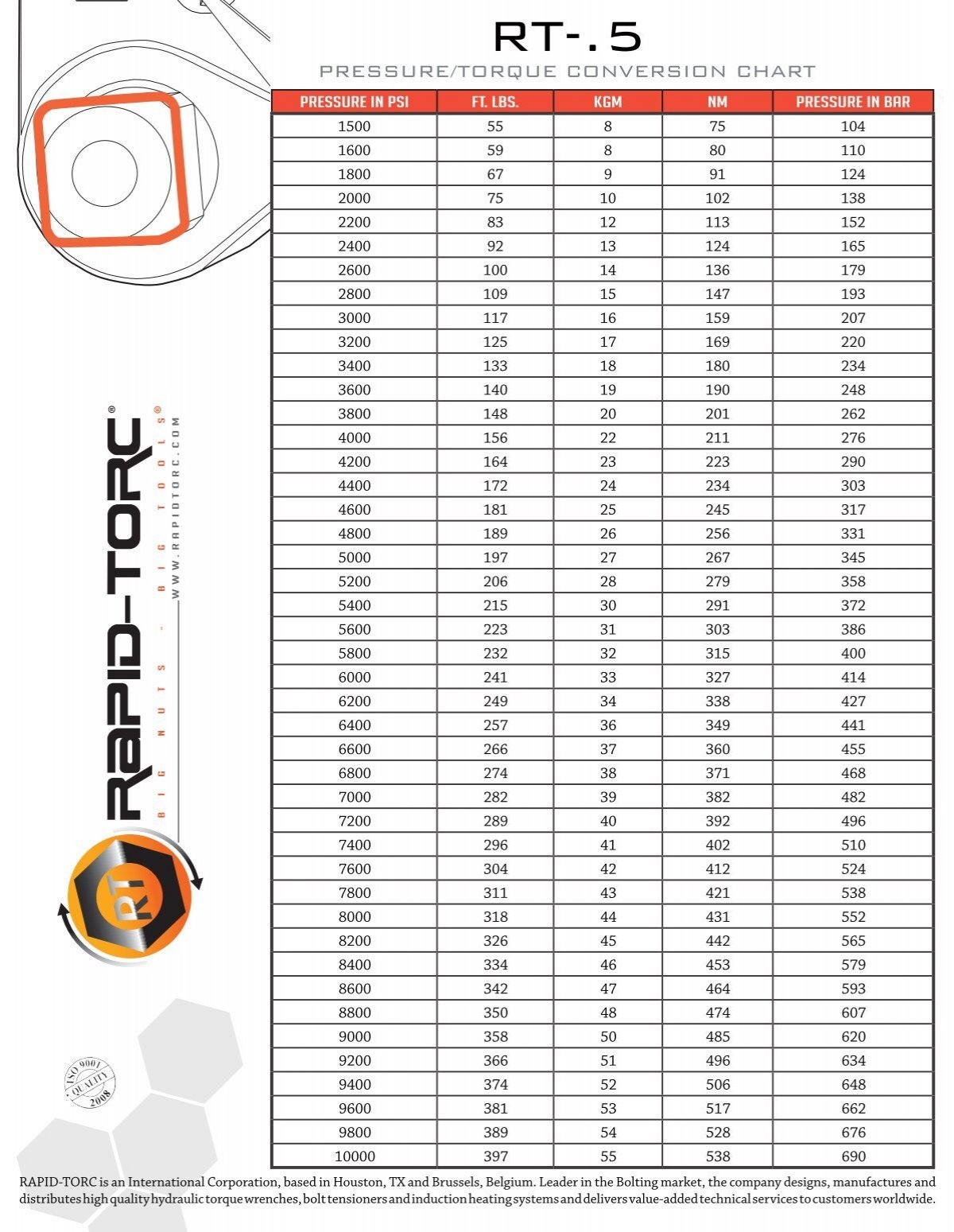PRESSURE TORQUE CONVERSION CHART Rapid Torc