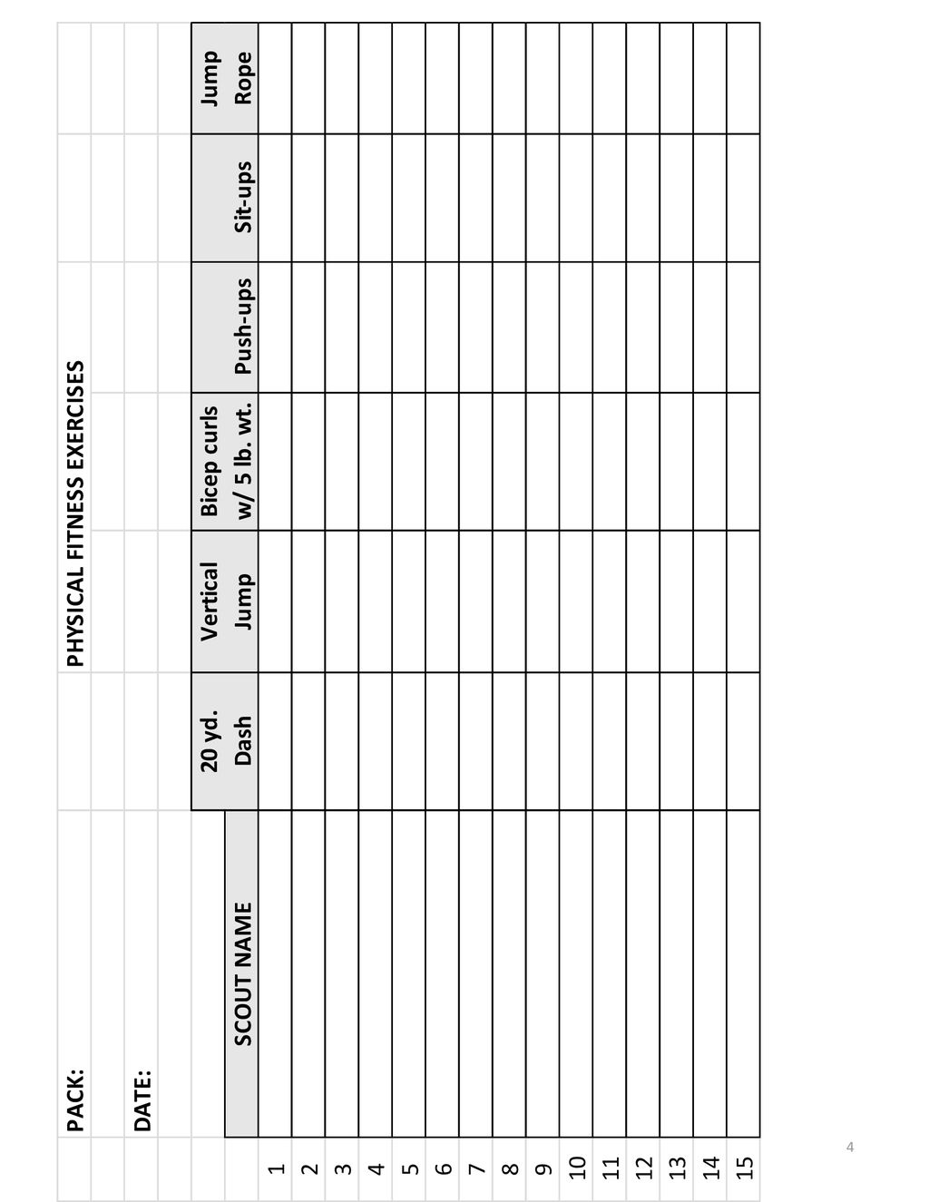 Webelos Fitness Chart For Stronger Faster Higher Cub Scout Ideas Worksheets Library