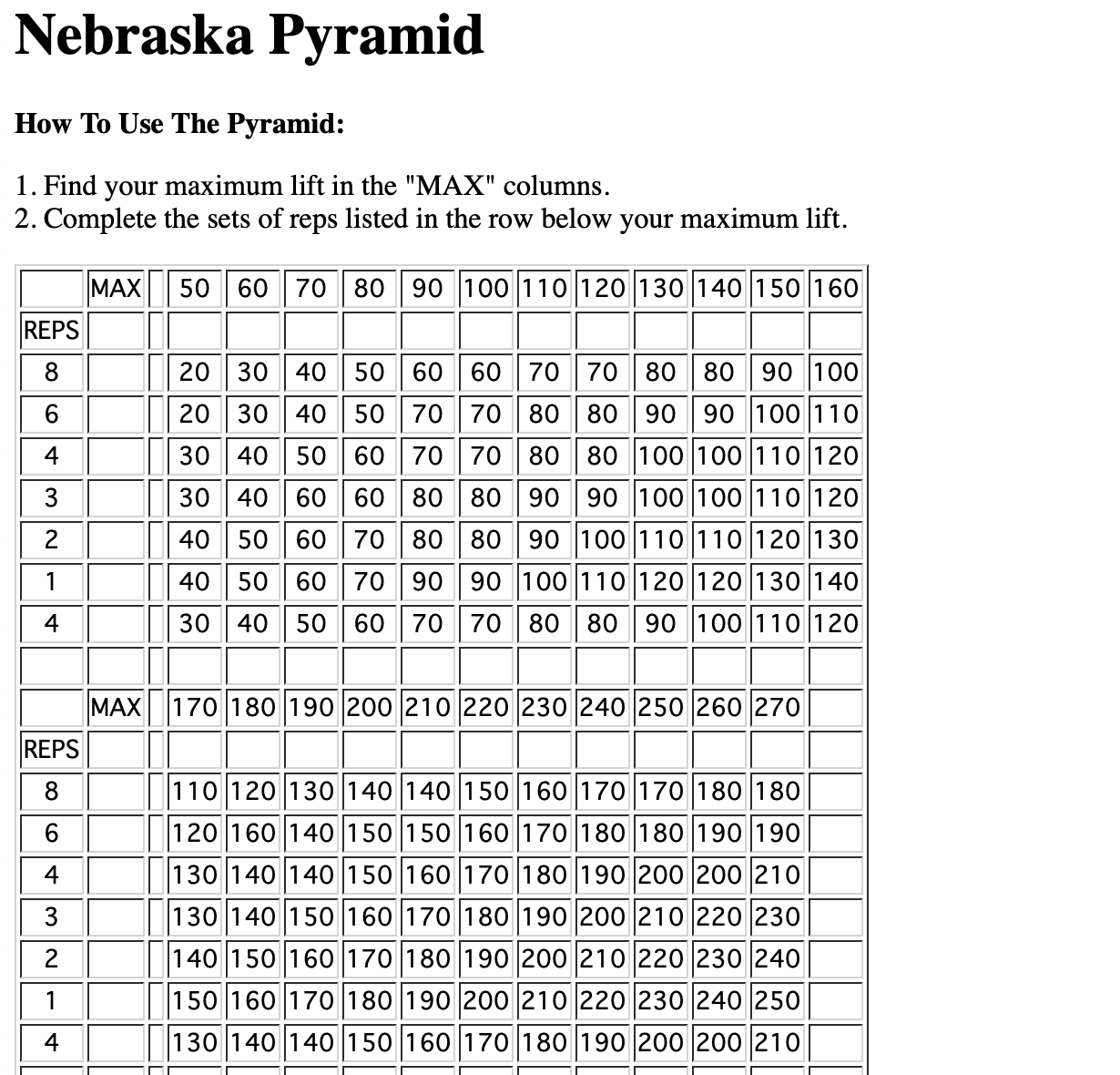 Printable Weight Lifting Pyramid Chart