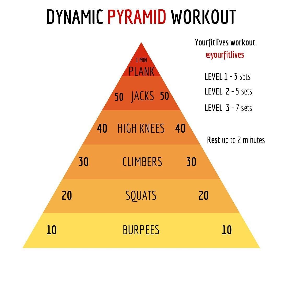 Start by setting your goals for each exercise, then work your way up the pyramid by increasing the weight and decreasing the reps. This method can help you build strength and endurance while avoiding plateaus in your training.