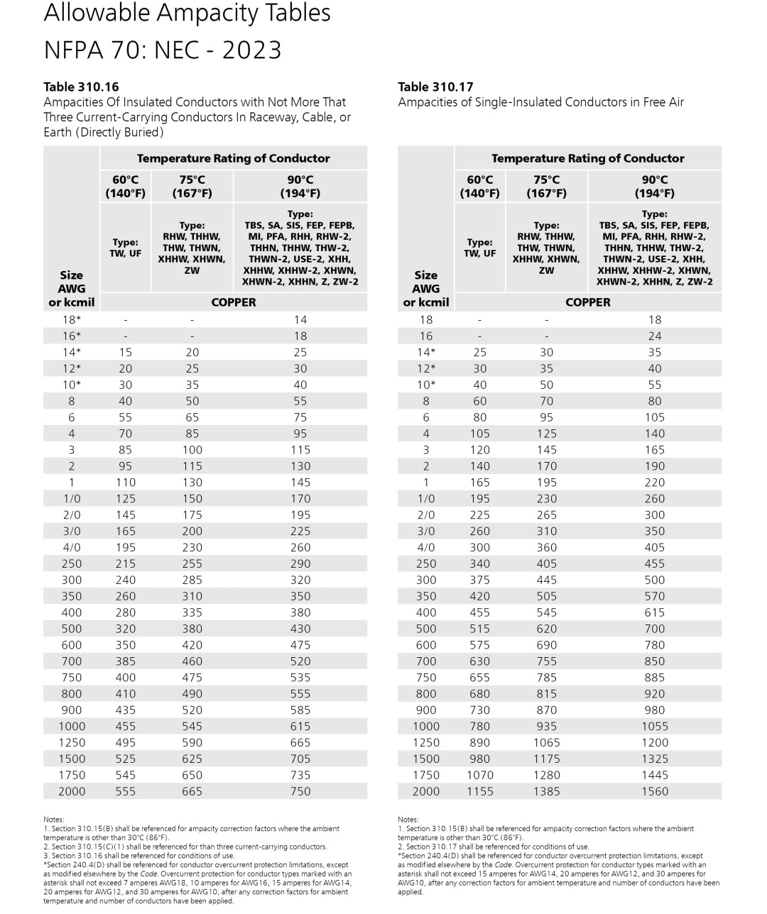 Printable Wire Ampacity Chart