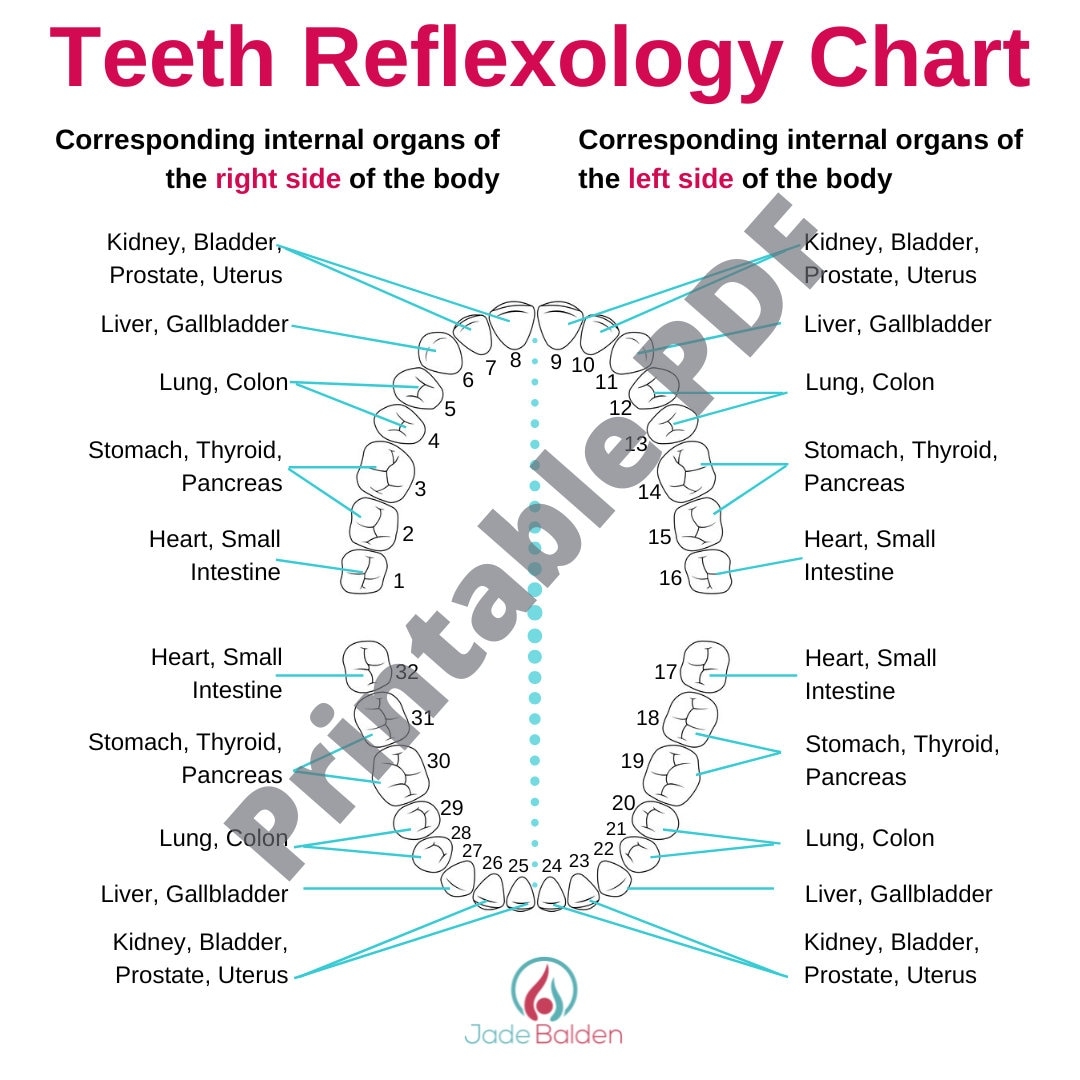 Teeth Reflexology Chart PDF Printable Etsy