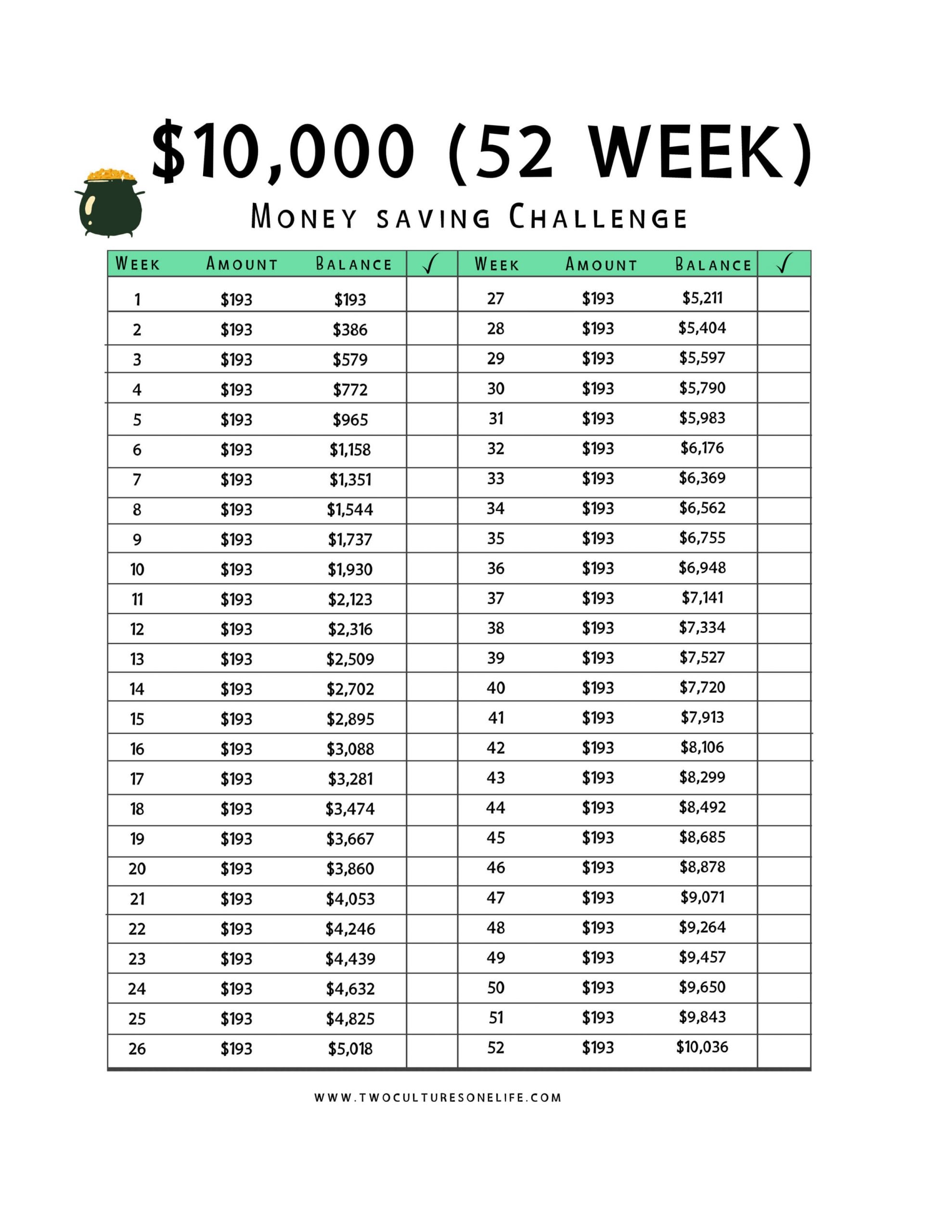 Savings Chart Printable 10 000
