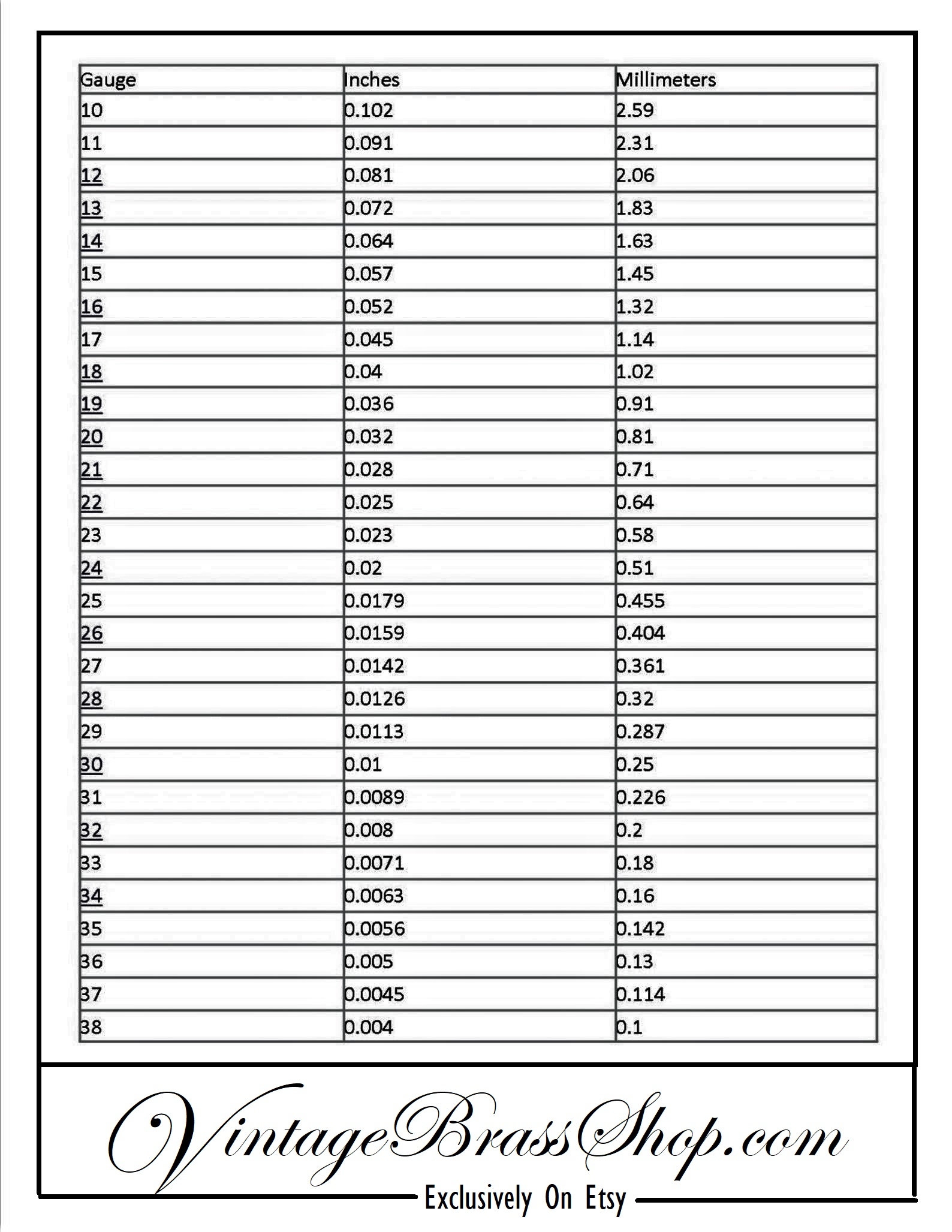 Free Chart To Convert Wire And Sheet Metal Gauges 10g To 38g To Inches And Millimeters Tutorial