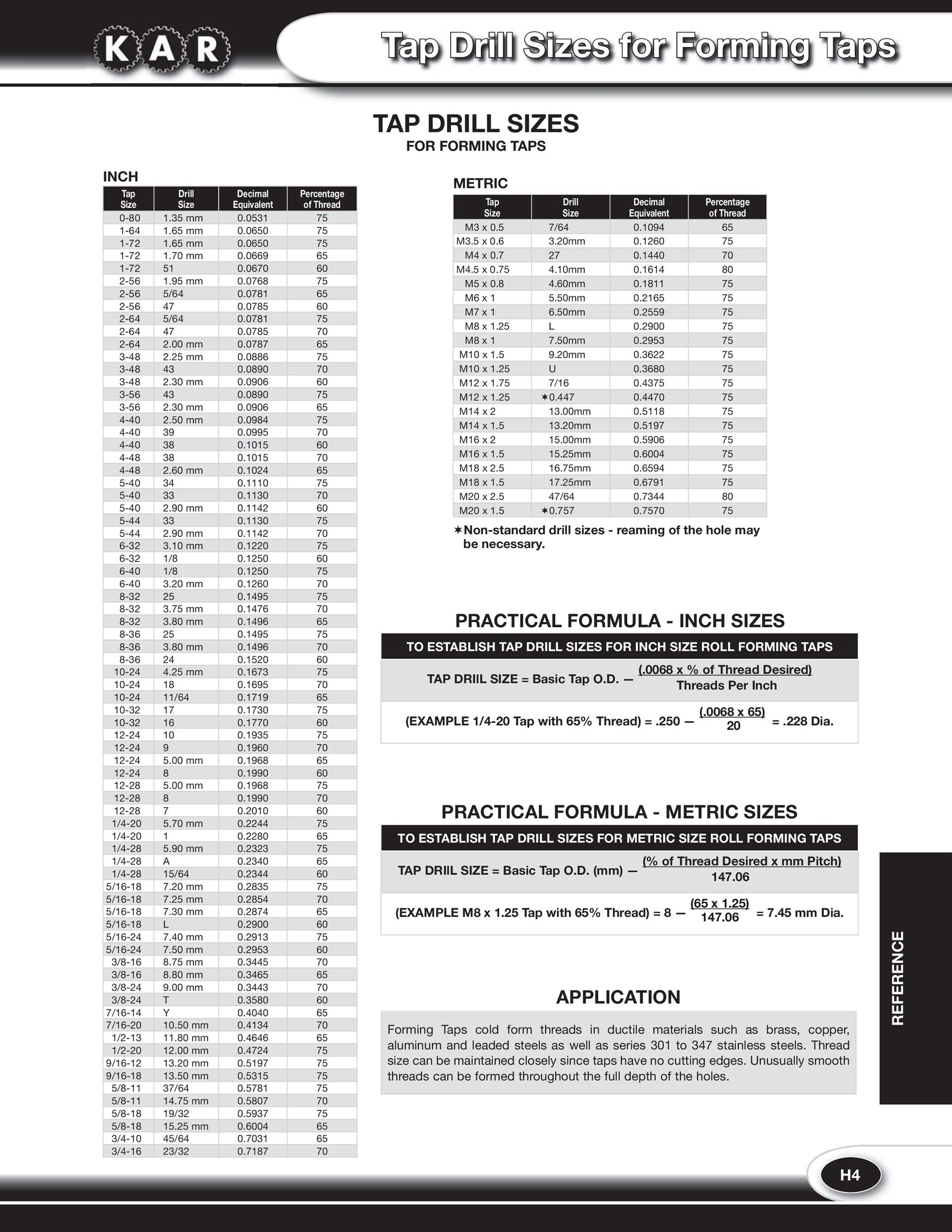 Tap Drill Charts
