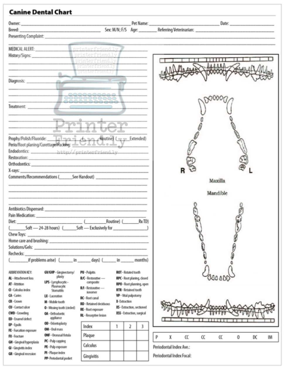 Template Printable Canine Dental Chart