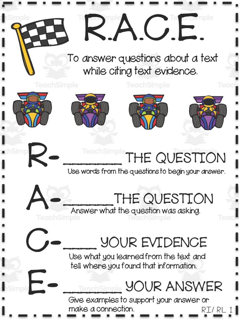 RACE Text Evidence Anchor Chart Etsy