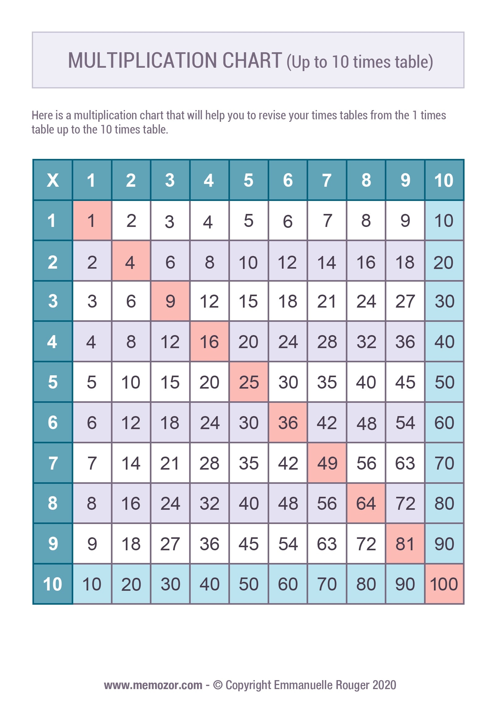 Times Table Chart 1-10 Printable