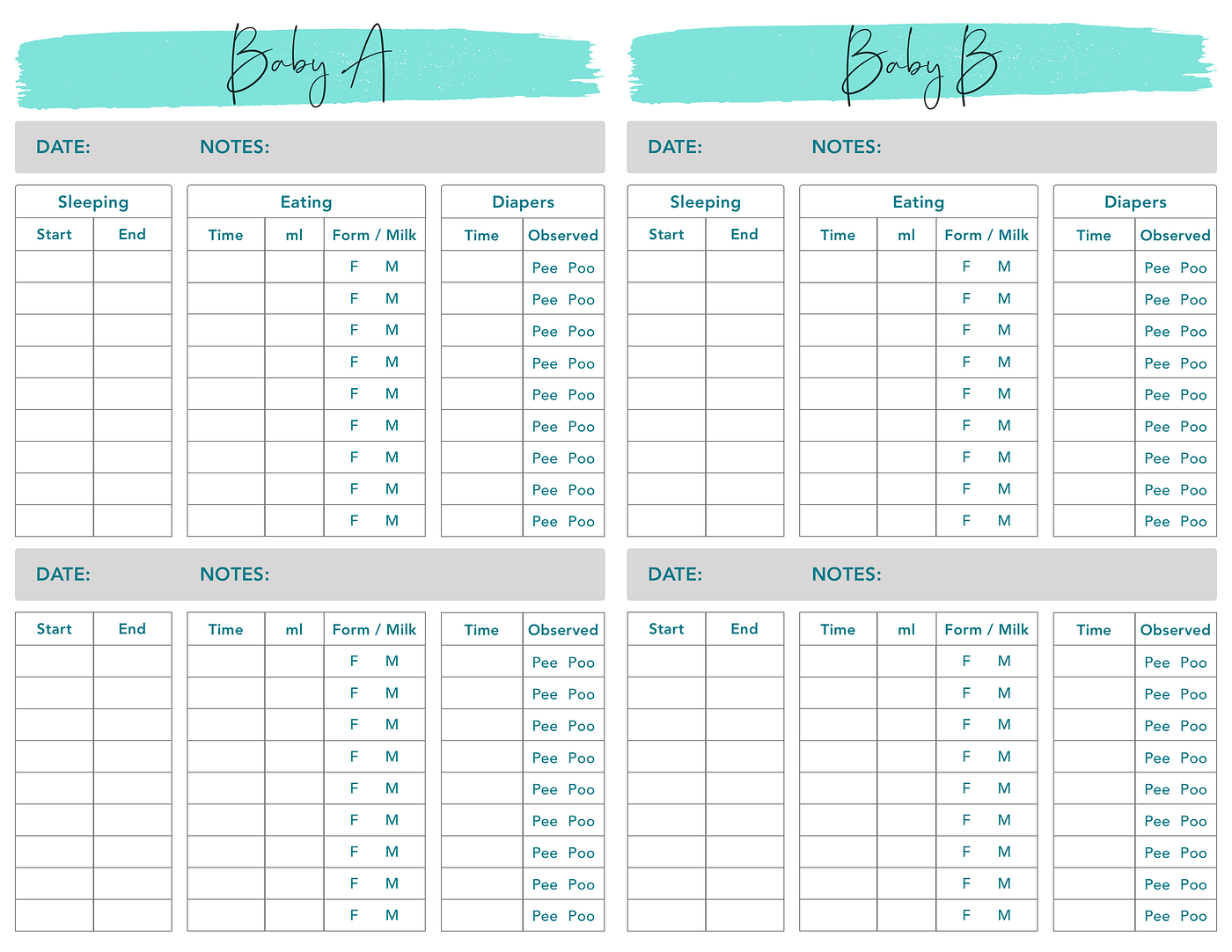 Our Twins Feeding Schedule Chart Printable is designed to be simple and user-friendly. You can print it out as many times as you need and fill it out by hand, or you can type directly into the chart on your computer or device.