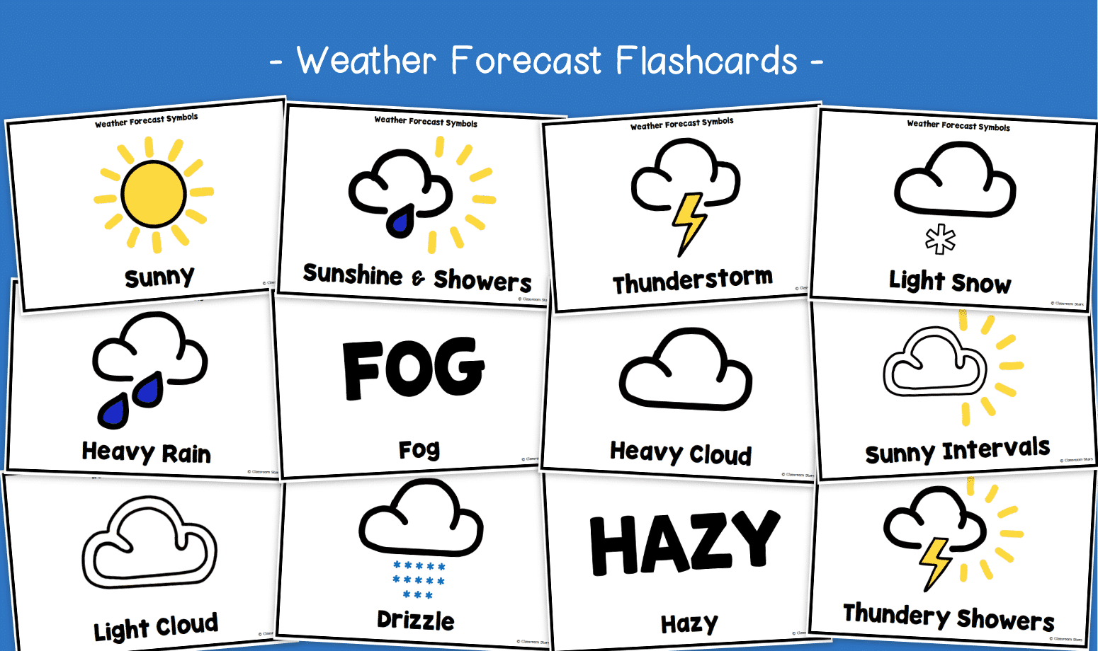 Weather Forecast Symbols Flashcards KS1 Seasonal Changes Primary Science