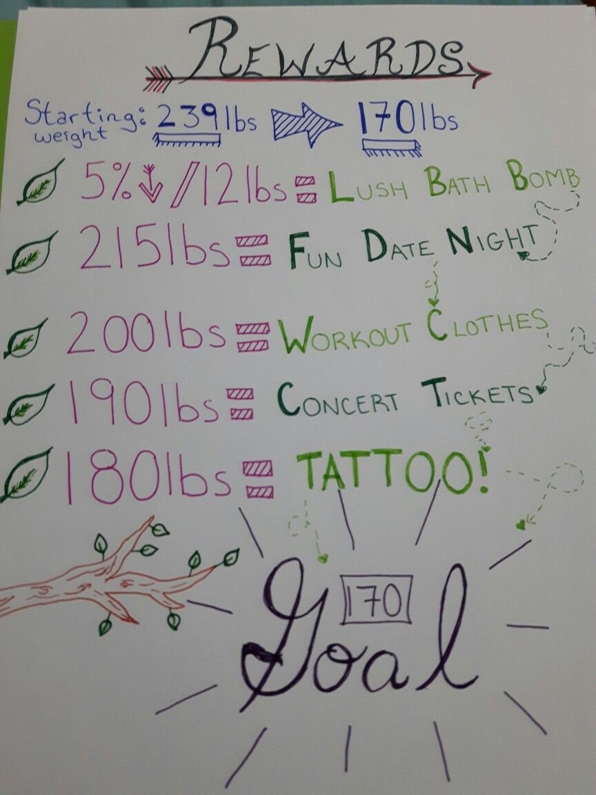 One popular approach is to create a chart with different levels of rewards based on the amount of weight you’ve lost. For example, you could treat yourself to a new workout outfit for every 5 pounds lost, or plan a spa day for hitting your ultimate goal weight.
